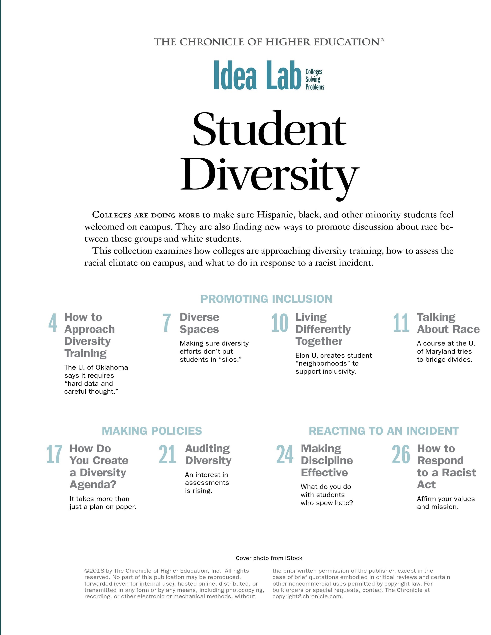 This collection of Chronicle articles examines how colleges are approaching diversity training, how to assess the racial climate on campus, and what to do in response to a racist incident. It includes: